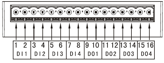端子說明: DI:開關(guān)量輸入接線端子 DO:開關(guān)量輸出接線端子