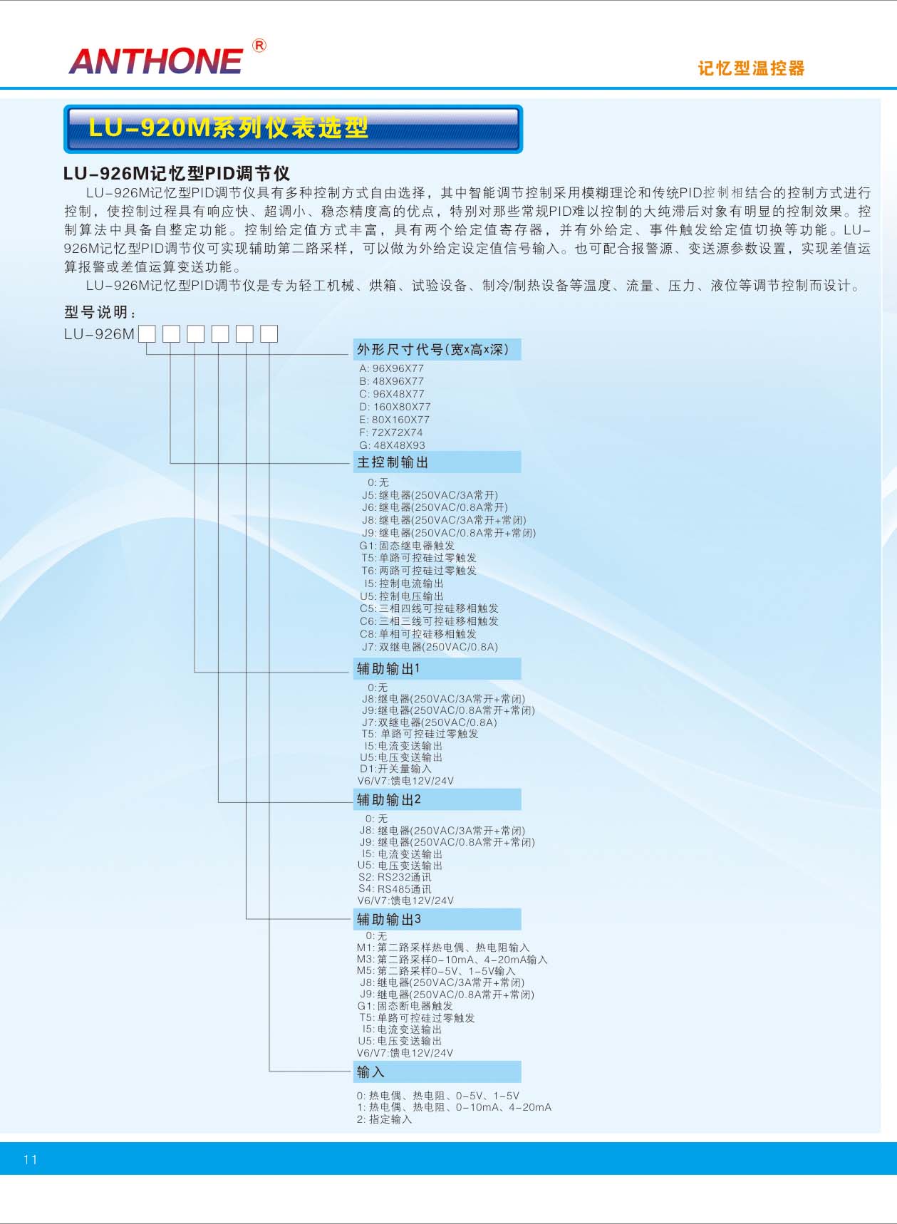 LU-926M智能調(diào)節(jié)儀是一種采用全新設(shè)計理念的高性能、高可靠性智能型工業(yè)調(diào)節(jié)儀表。專為輕工機械、烘箱、試驗設(shè)備、制冷/制熱設(shè)備等溫度、流量、壓力、液位等調(diào)節(jié)控制而設(shè)計。廣泛應(yīng)用于化工、陶瓷、冶金、石化、熱處理等行業(yè)。