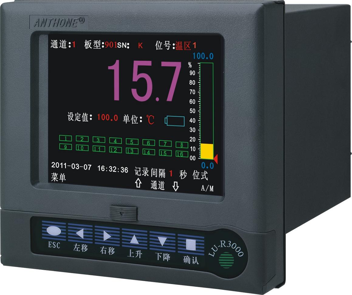 LU-R3000彩色液晶顯示控制無紙記錄儀,可以為一至十六通道輸入,具有位式控制、報警、饋電等輸出功能的無紙記錄儀