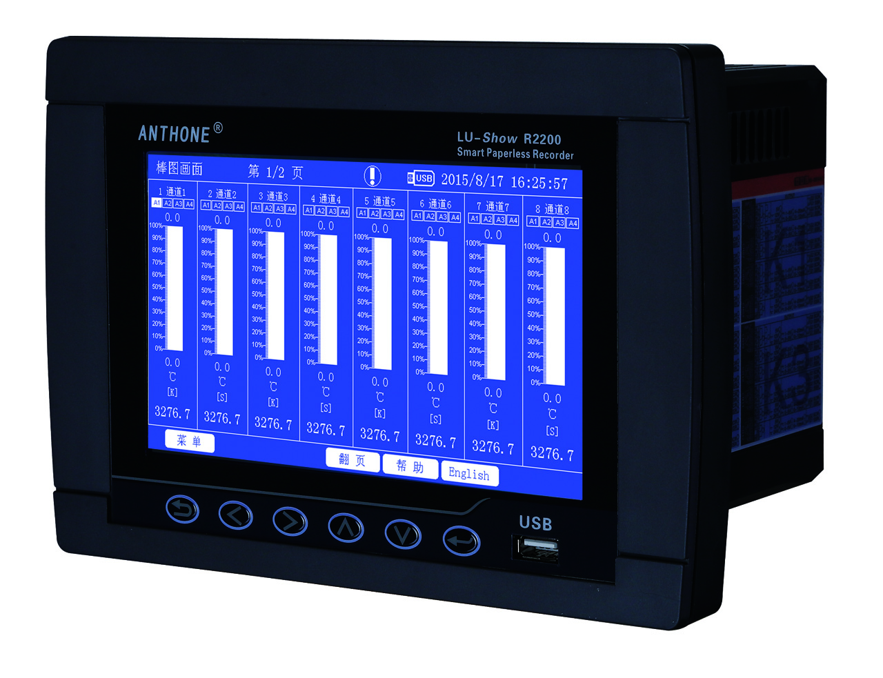 安東電子最新一代無(wú)紙記錄儀 LU-Show R/C2200 R/C3200智能觸摸屏無(wú)紙記錄儀,具有開(kāi)機(jī)視頻秀、開(kāi)機(jī)圖片秀、工藝流程秀、“幫助”秀、滑屏動(dòng)感操作、截屏打印、板卡式模塊化結(jié)構(gòu)、模糊PID控制、可編程報(bào)警輸出、最高等級(jí)抗群脈沖干擾、通道擴(kuò)展功能等優(yōu)點(diǎn)。