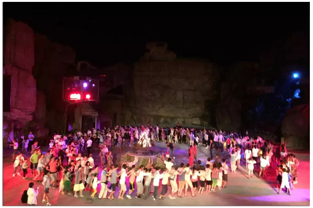 晚會(huì)有開(kāi)場(chǎng)的草裙舞、樹(shù)葉吹奏表演、雜技表演、火把絕技表演;節(jié)目精彩絕倫,配上背景不斷變化的燈光,高山流水及噴泉,襯托的恰到好處。隨著篝火的點(diǎn)燃,和觀眾互動(dòng)環(huán)節(jié)開(kāi)始了,大家在篝火前圍成了幾大圈,隨著音樂(lè),跟著最前面的演員一起跳起了草裙舞,還有熟悉的兔子舞。很久很久沒(méi)有這么放松過(guò)了,真是個(gè)難忘的夜晚。