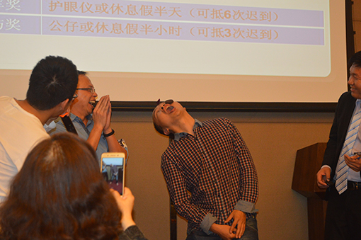 優(yōu)先員工獎(jiǎng):圖為年度優(yōu)秀員工代表發(fā)言